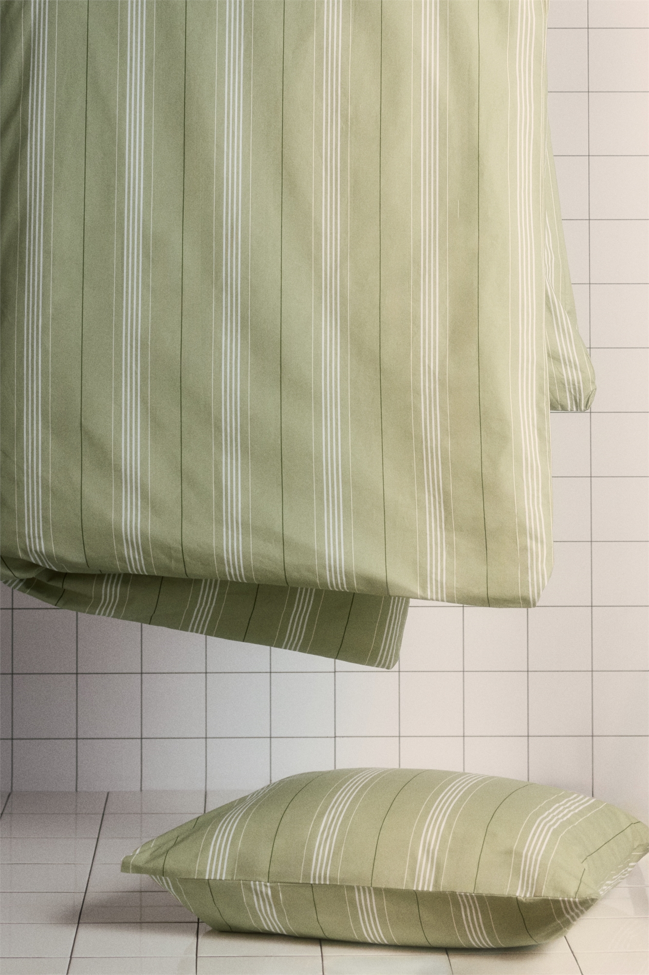 Односпальный комплект пододеяльников из хлопковой перкали с количеством нитей 200, с принтом на всю поверхность и матовой отделкой. Пододеяльник с отверстием внизу и одна наволочка с отверстием-конвертом.