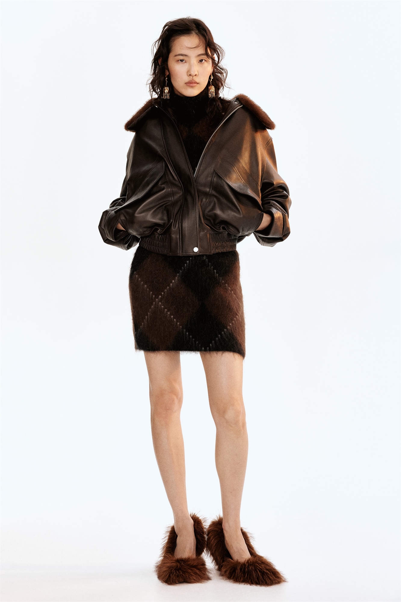 Облегающая юбка-мини из мягкого узорчатого трикотажа с содержанием мохера и шерсти. Высокая талия со скрытой резинкой.