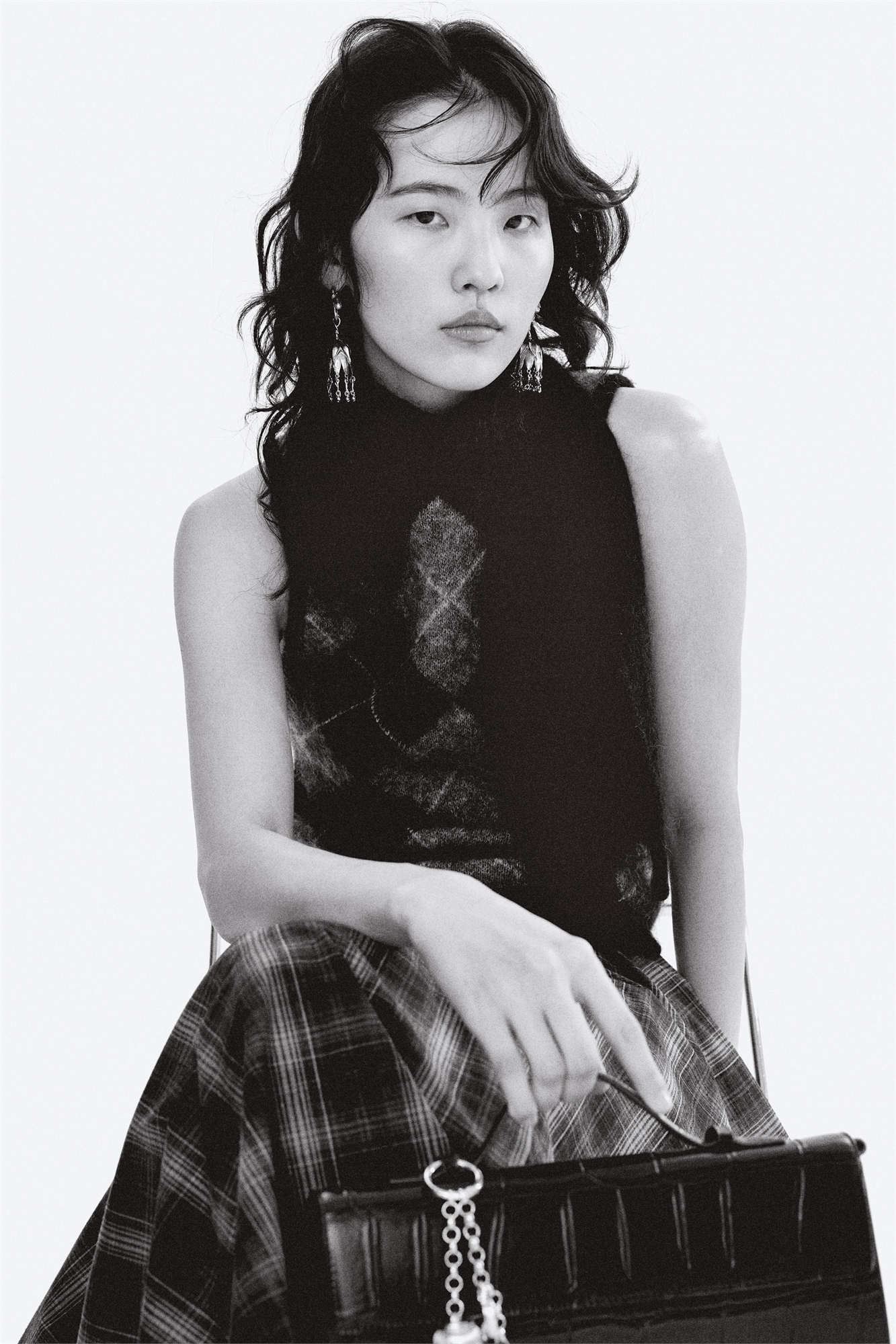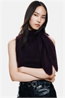 Облегающий топ без рукавов из мягкого трикотажа с содержанием мохера и шерсти. Воротник-шарф с трубчатой отделкой и отверстием для продевания другого конца. Узкая тесьма по подолу.