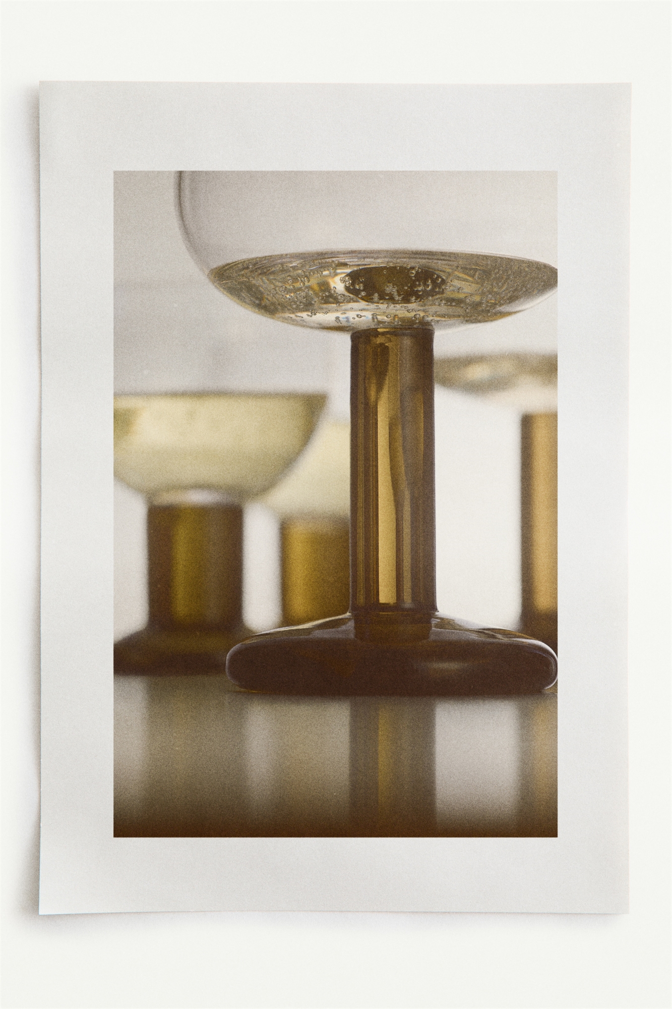 Купе из выдувного стекла ручной работы с мягкой округлой чашей и смелой тонированной ножкой. Объем 190 мл.