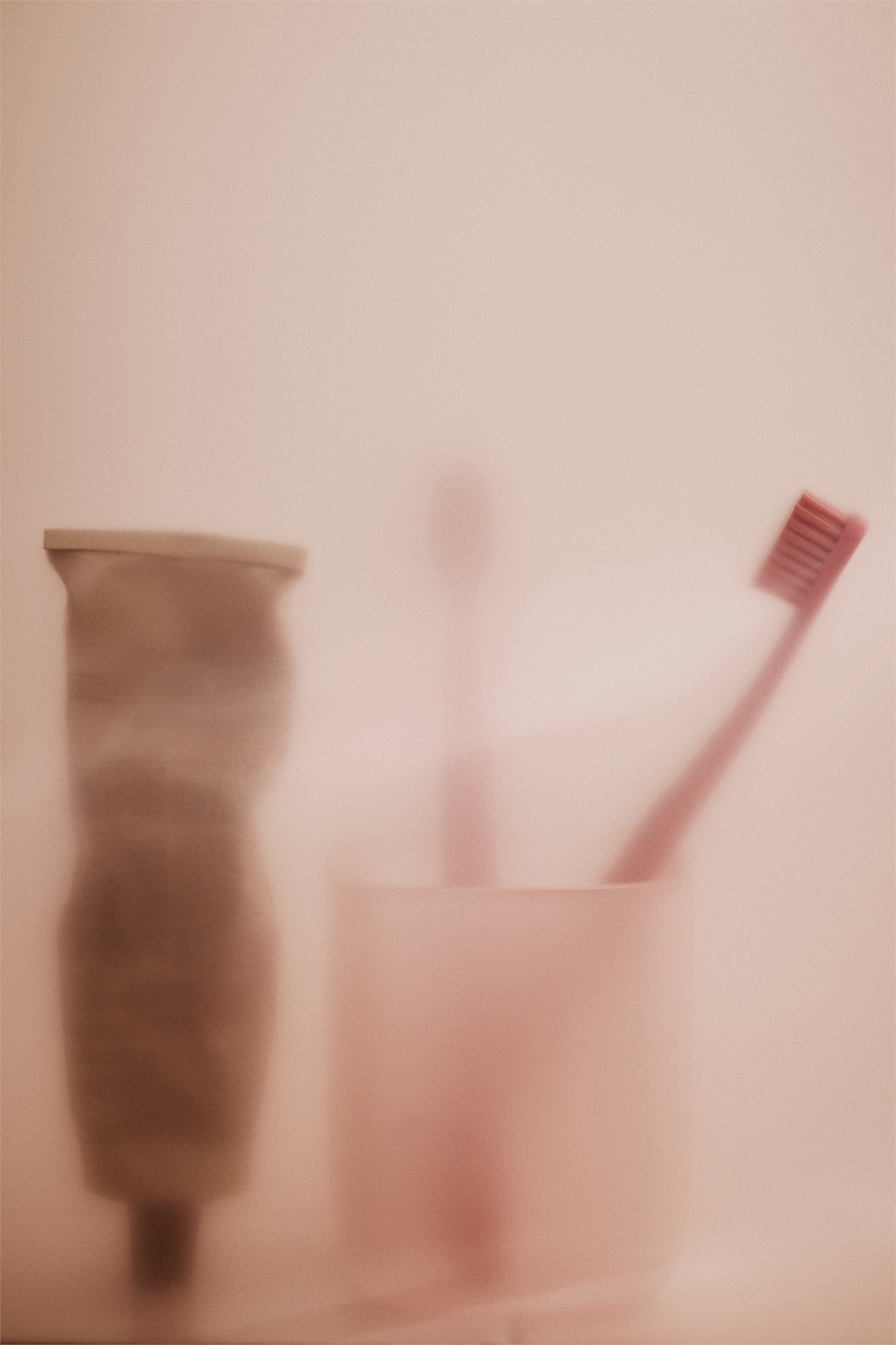 Кружка для зубных щеток из пластика с мягким квадратным дизайном, гладкими закругленными краями и небольшим дренажным отверстием в дне.