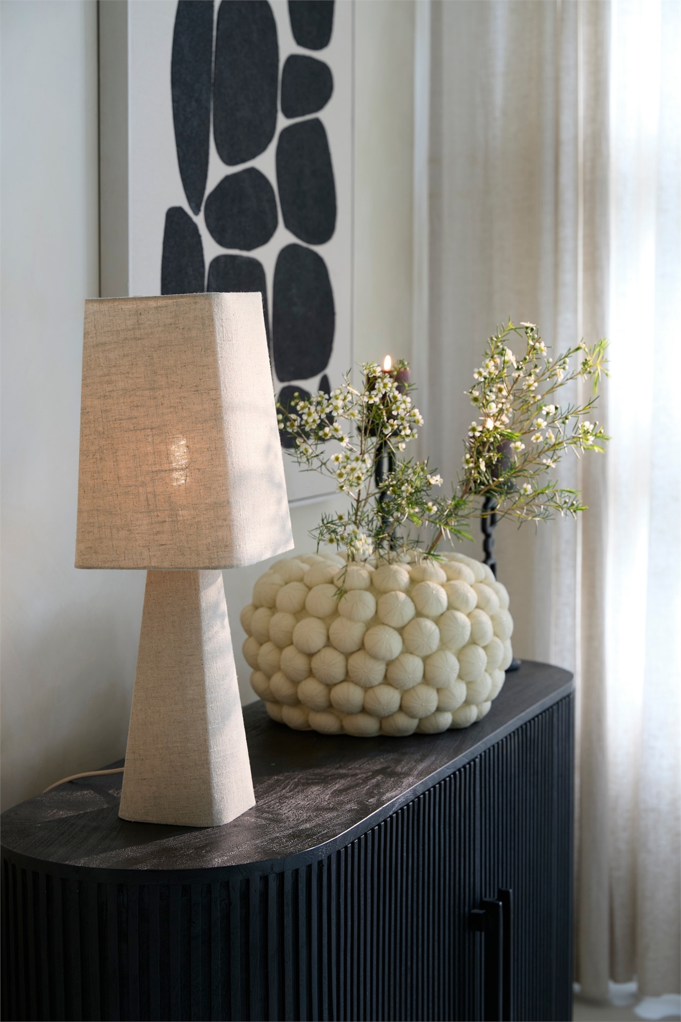 Эта настольная лампа Mikko уникальна тем, что и основание лампы, и абажур сделаны из льна. Льняная ткань натянута вокруг стального каркаса лампы, придавая основанию устойчивость и создавая приятный мягкий вид. Ткань придает настольной лампе гармоничный, мягкий свет и является стильным дополнением к вашему интерьеру. Размер: 20 x 20 x 58
