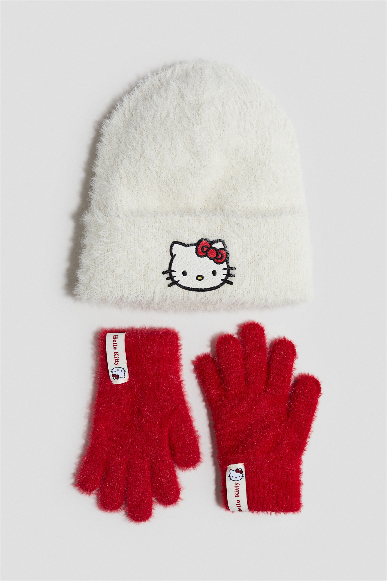Комплект из пинетки и перчаток из мягкого, пушистого трикотажа с аппликацией.