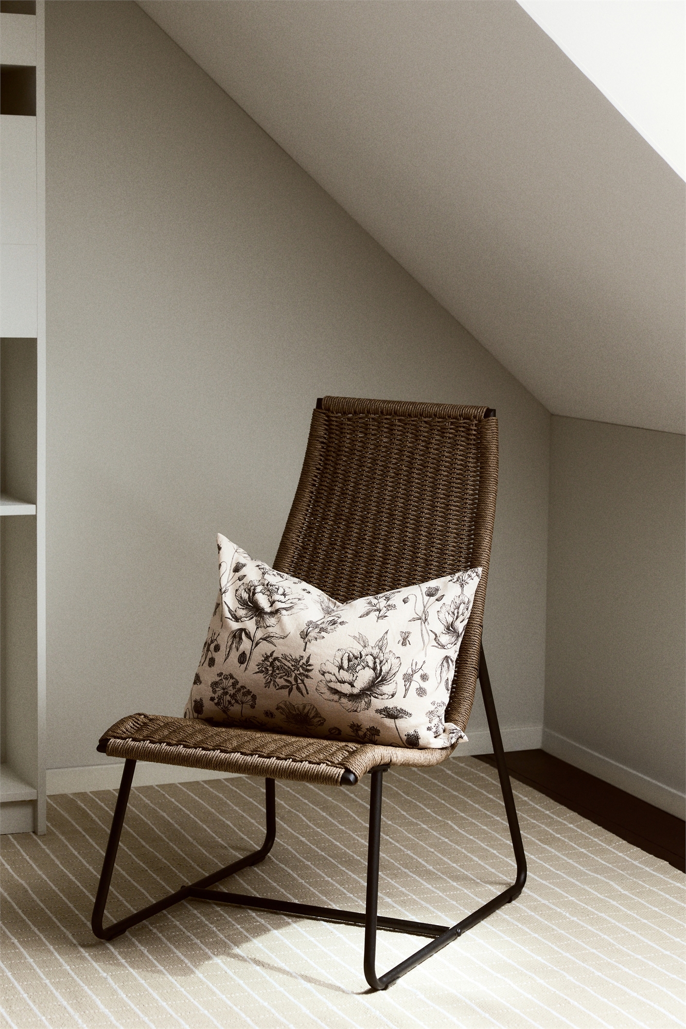 Наволочка из смесовой ткани из хлопка и льна с цветочным узором. Застежка-молния по одной стороне.