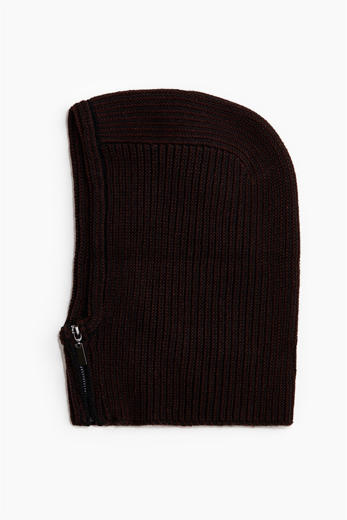 Балаклава из мягкого трикотажа с потайной молнией спереди.