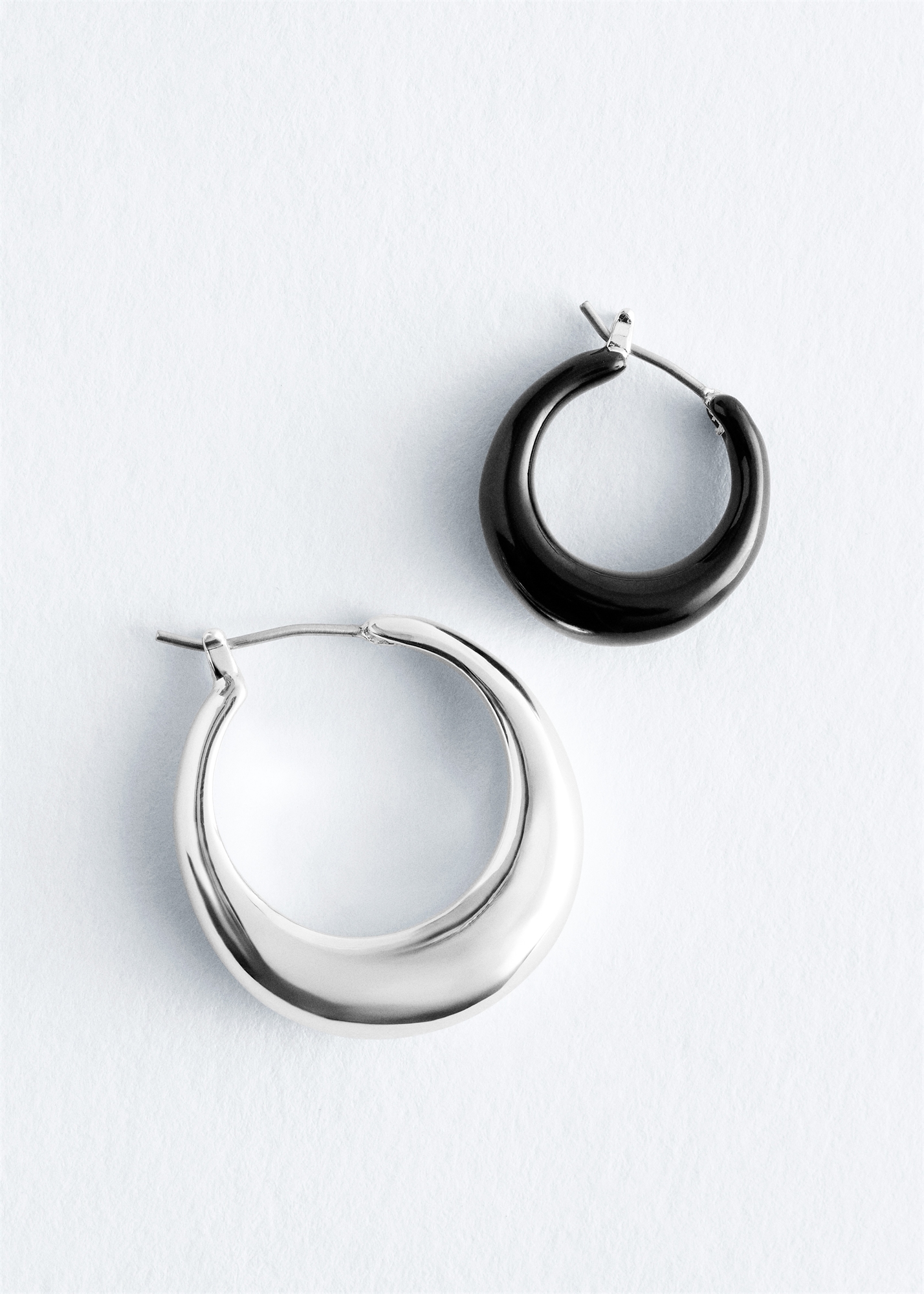 Этот комплект состоит из двух пар серег-обручей разного размера, расширяющихся к низу — одна из них выполнена в золотом тоне, другая - с цветным покрытием. Носите их вместе или сочетайте между собой. Проверено никелем Застежка-петля для легкого надевания и снимания Размеры цветных обручей: 1,7 см x 1,8 см / 0,66” x 0,7” Размеры обручей золотого цвета: 2,5 см x 2,6 см / 0,98” x 1”