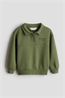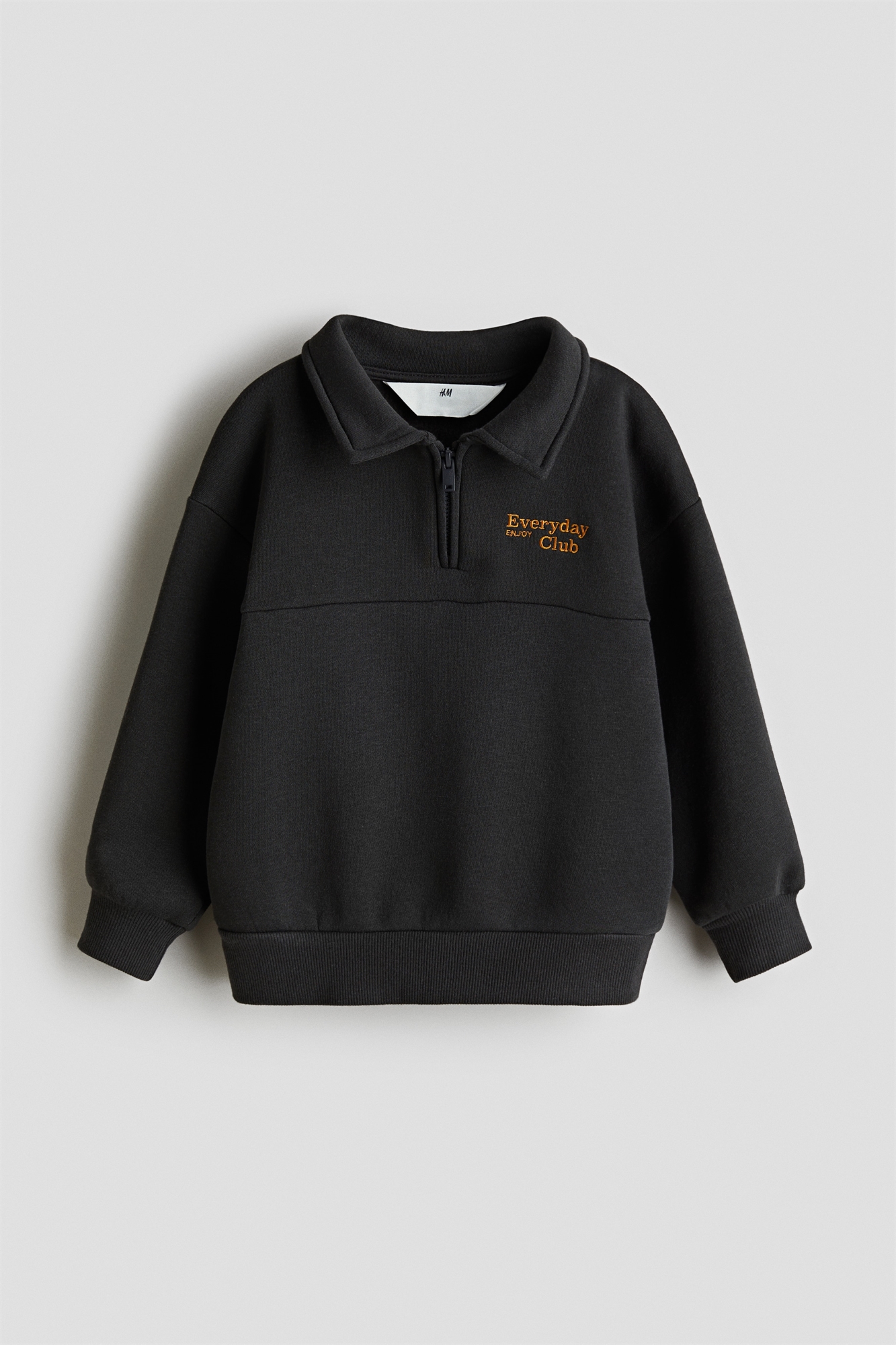Топ из толстовочной ткани с мягкой начесом внутри и вышитым текстовым мотивом спереди. Воротник, застежка на молнию, спущенные плечи и длинные рукава. Манжеты и подол в рубчик.