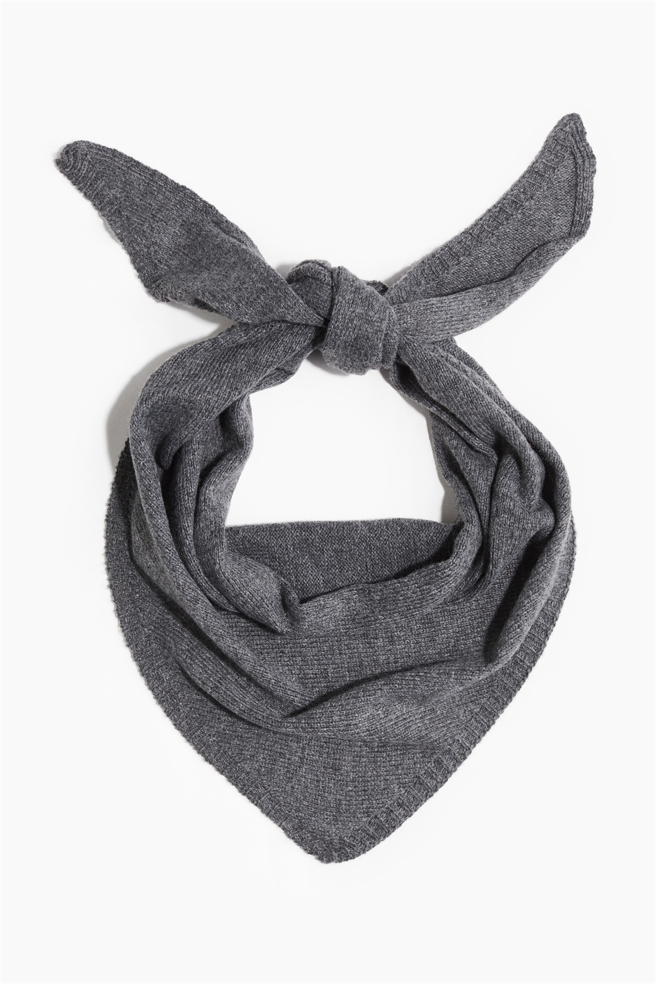 Треугольный шарф из мягкого тонкого трикотажа с ребристой каймой.