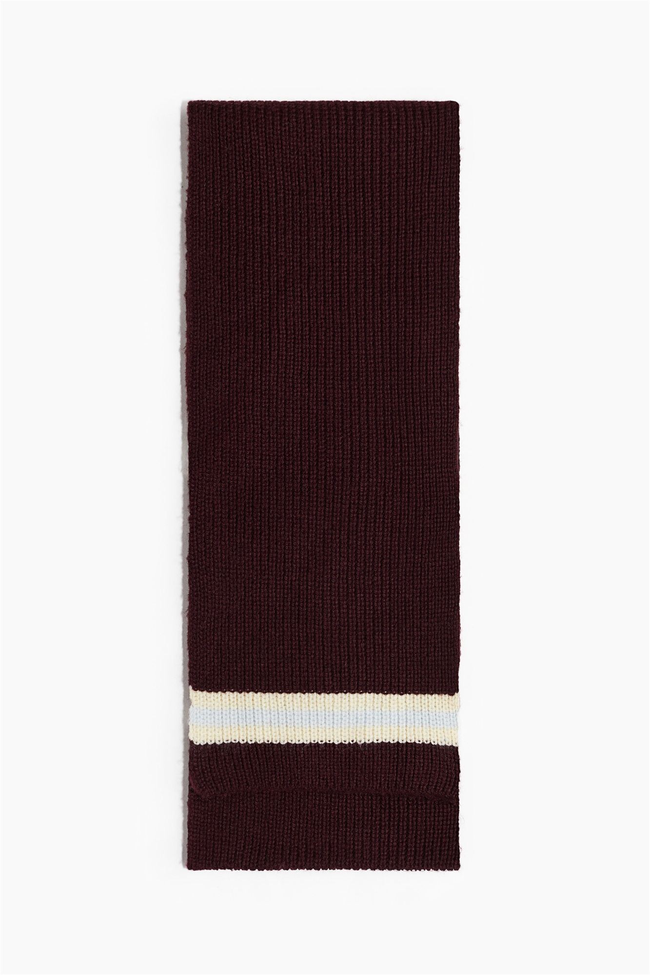 Шарф из мягкого трикотажа в рубчик с акцентными цветными полосками на концах.