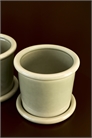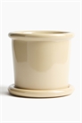 Большой каменный горшок для растений с закругленным краем и подходящей подставкой.