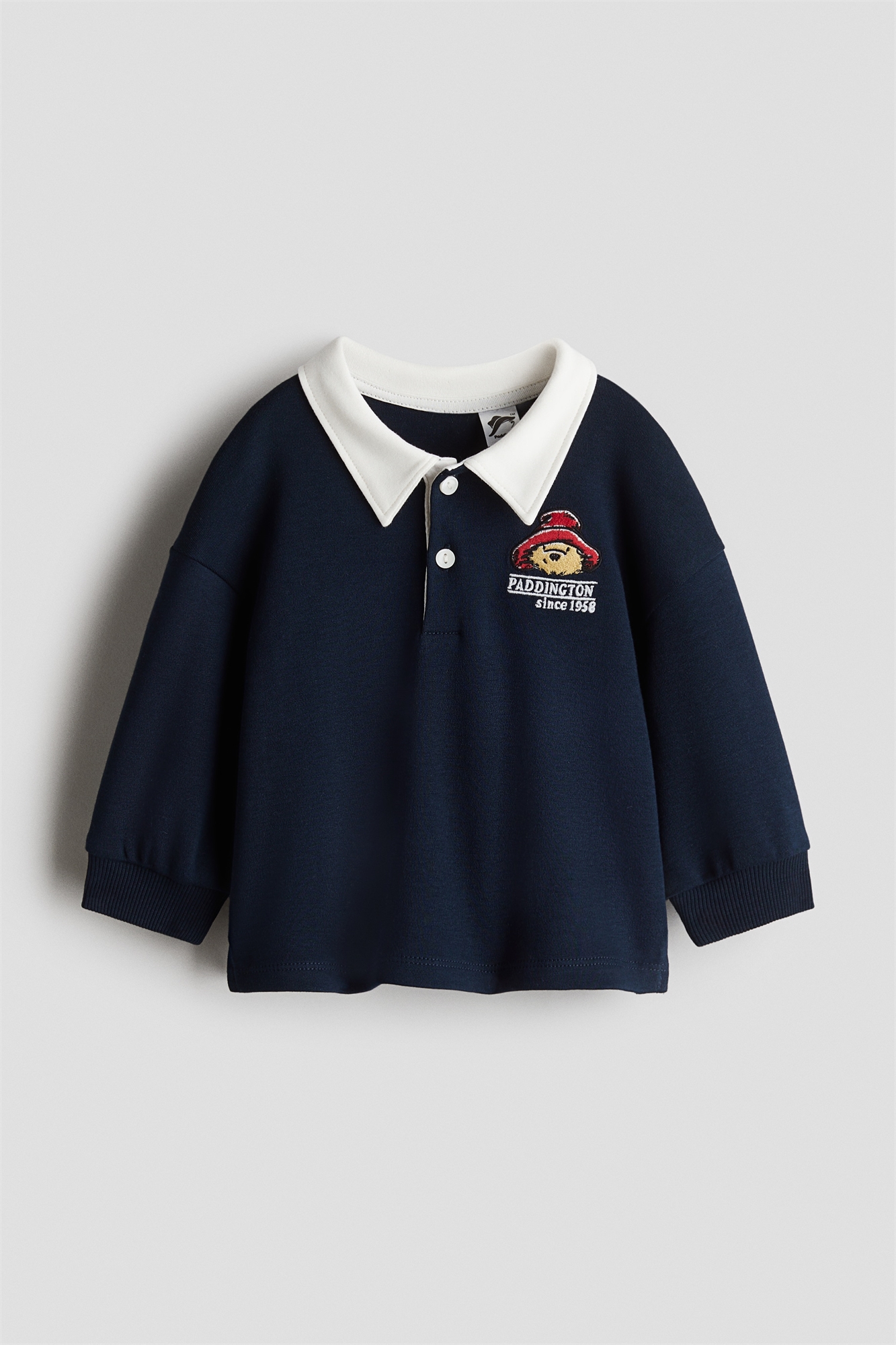 Рубашка для регби из мягкого хлопкового джерси с небольшим вышитым мотивом спереди. Воротник контрастного цвета, застежка на пуговицах и спущенные плечи. Длинные рукава с ребристыми манжетами и небольшим разрезом на подоле с каждой стороны.