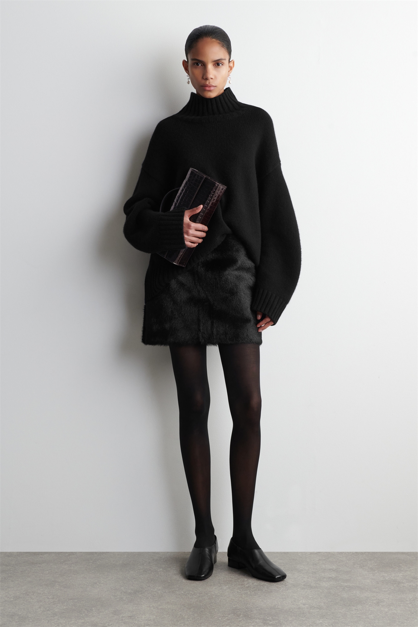Эта яркая юбка-мини, ставшая иконой сезона, усиливает свою стилистическую мощь. Она изготовлена из роскошной тактильной кожи пони и представлена в угольно-черном цвете, который станет основой осенне-зимнего гардероба. Для максимального эффекта сочетайте ее с курткой в тон. Regular fitЗастежка на молниюCOS поддерживает ответственное производство через Leather Working Group Оболочка: 100% кожа (теленок). Подкладка: 100% вискоза. Без учета отделки / Специализированная чистка Длина по спинке для размера EU 36 составляет 35,5 см / Модель носит размер EU 36