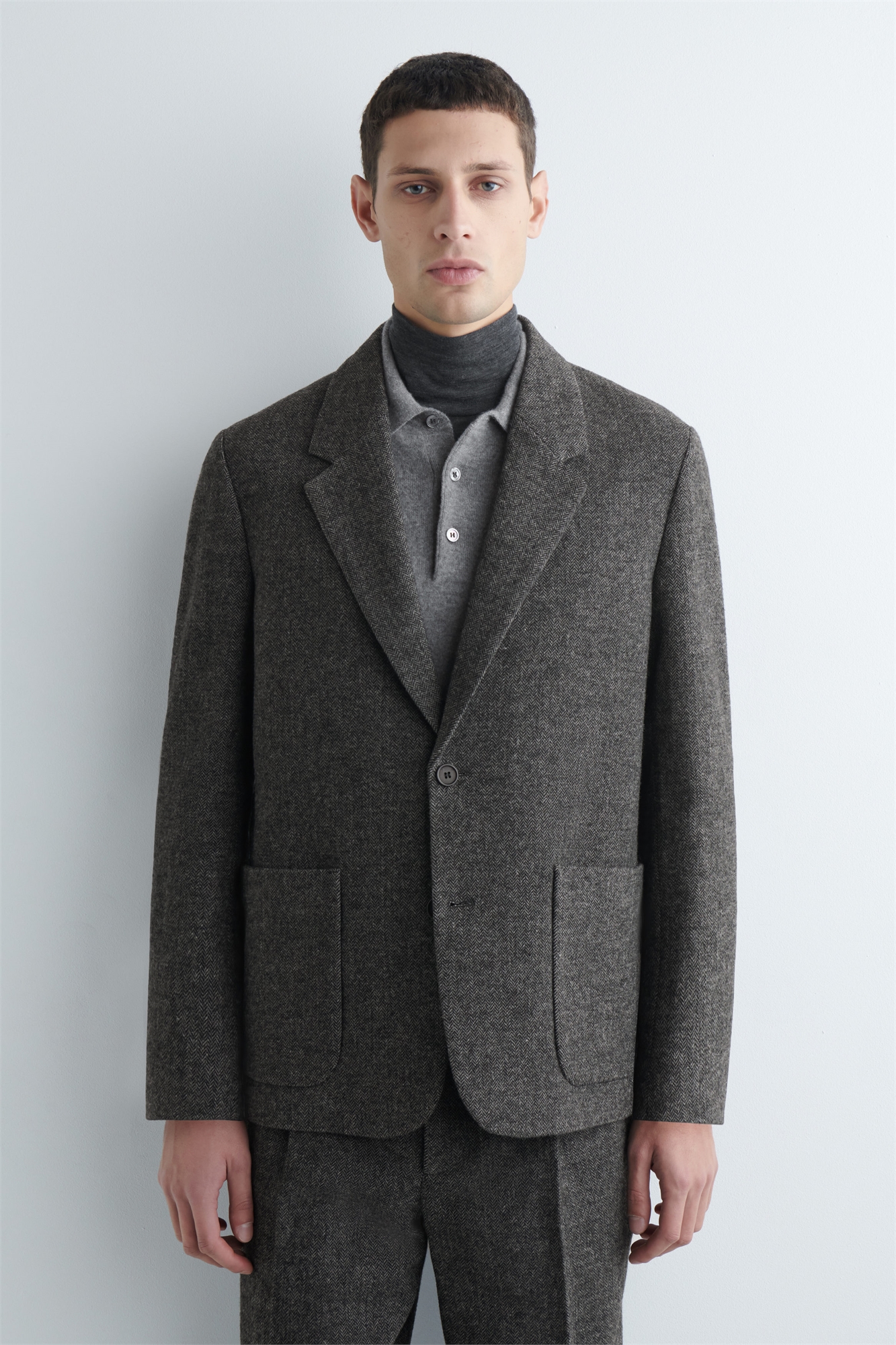 Коллекция одежды этого сезона основана на классических моделях. Этот элегантный блейзер выполнен из тактильной шерстяной смеси с узором "елочка" и имеет свободный, неструктурированный крой. Он имеет характерный поднимающийся лацкан и холщовую подкладку. Свободный кройПуговицыПереработанная шерсть изготавливается из отходов прядильного производства, обрезков пряжи, обрезков производства и одежды после потребления - таким образом, мы создаем новые фасоны без лишних затрат материала Внешняя ткань: 60% переработанной шерсти после потребления, 30% переработанного полиэстера, 5% других волокон, 5% переработанного полиамида (переработанного нейлона). Подкладка карманов: 100% хлопок. Подкладка: 100% вискоза. Детали исключены/Сухая чистка Длина по спинке в размере 48 = 74 см/Модель носит размер 48