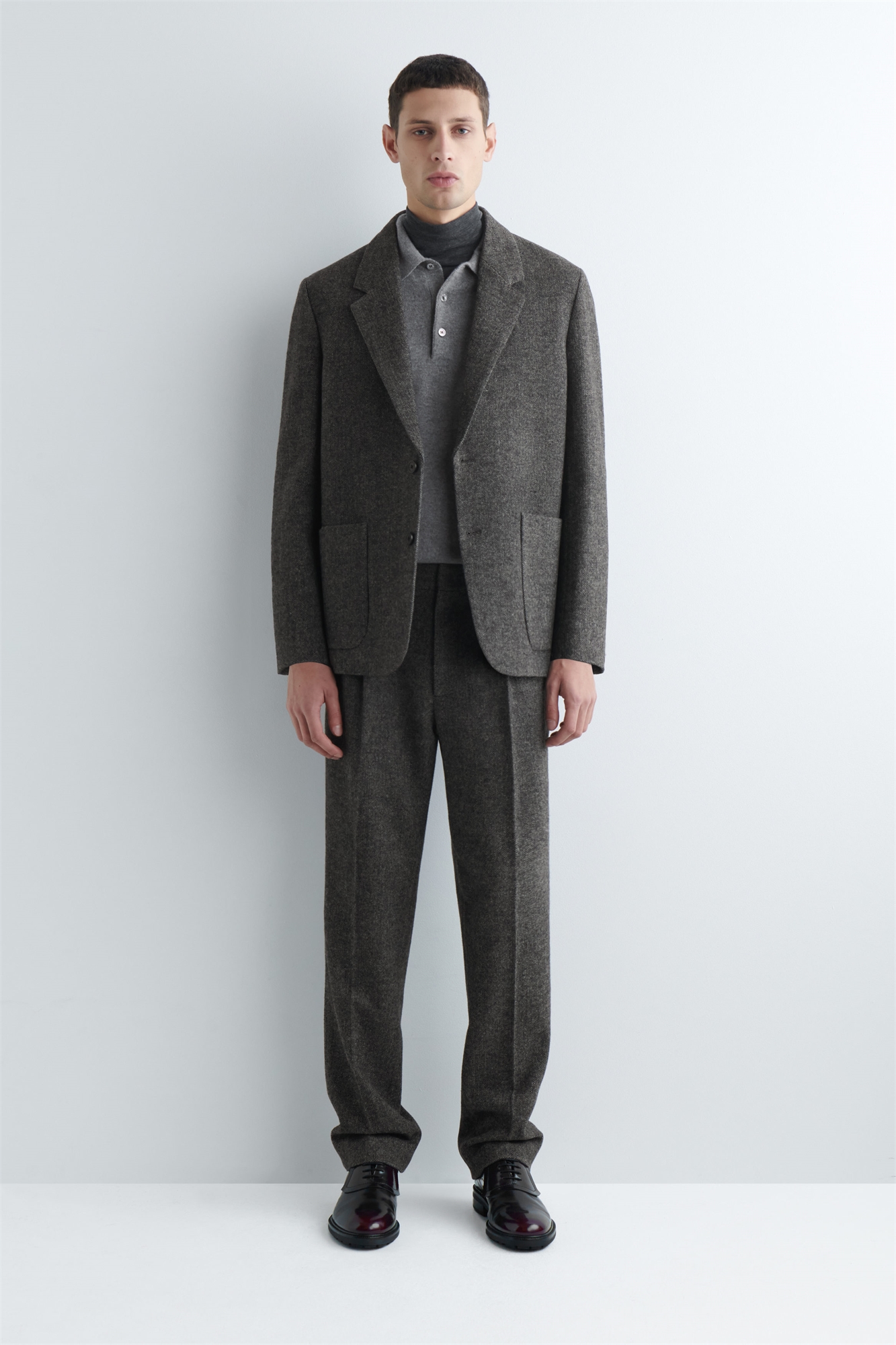 В этом сезоне наша коллекция пошива одежды обращается к классическим элементам стиля. Эти нестареющие брюки с прямыми ногами выполнены из шерстяной смеси и украшены узором "елочка". Они имеют четыре кармана и петли для ремня. Regular fitЗастежка на крючок, защелку и молниюПереработанная шерсть производится из отходов прядильного производства, обрезков пряжи, отходов производства и одежды после потребления - так мы создаем новые фасоны без лишних затрат материала Внешняя ткань: 60% переработанной шерсти после потребления, 30% переработанного полиэстера, 5% других волокон, 5% переработанного полиамида (переработанного нейлона). Детали исключены/Сухая чистка Внутренняя длина ноги в размере ЕС 48 = 79,9 см/Модель носит размер ЕС 48