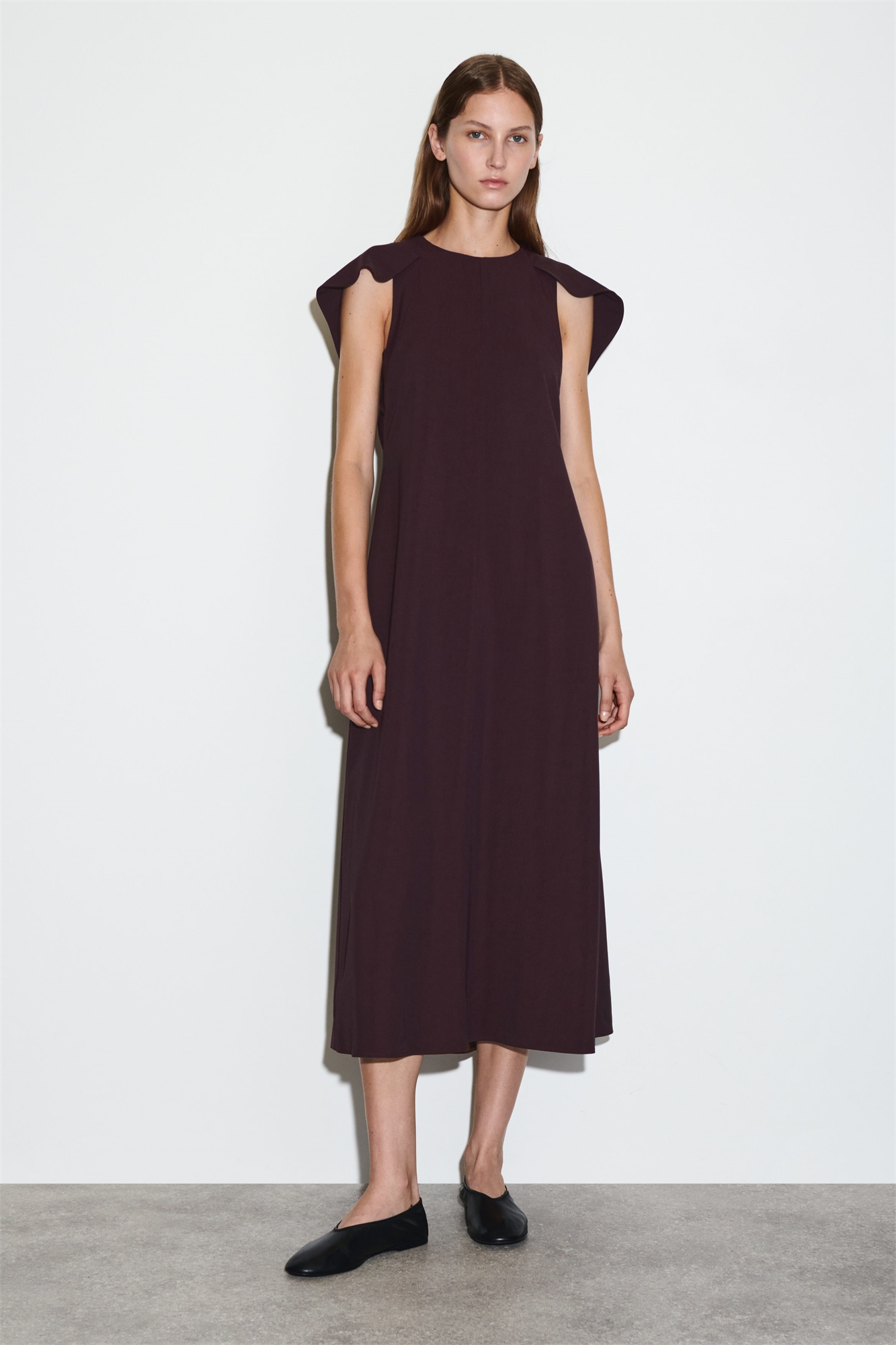 Эта неземная вещь - образец мягкой плавности и женственности. Выполненное в насыщенном сливовом цвете, оно сшито из легкой ткани, которая легко драпируется, и имеет закругленные рукава-кейп, которые красиво ниспадают на одно из плеч. Подойдет к классическим балеткам. Regular fitЗастежка на молниюLENZING™ ECOVERO™ вискоза - фирменное вискозное волокно, изготовленное из древесной массы Оболочка: 52% ECOVERO™ вискоза, 39% вискоза, 9% шерсть RWS. Подкладка: 100% хлопок. Без учета отделки / Сухая чистка Длина по спинке для размера EU 36 составляет 122,5 см / Модель носит размер EU 36