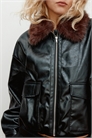 Куртка оверсайз из ткани с покрытием, пушистым воротником, застежкой на молнию спереди и накладными карманами спереди. Кокетка сзади, спущенные плечи, длинные рукава с манжетами на пуговицах и эластичная резинка по подолу. На подкладке.