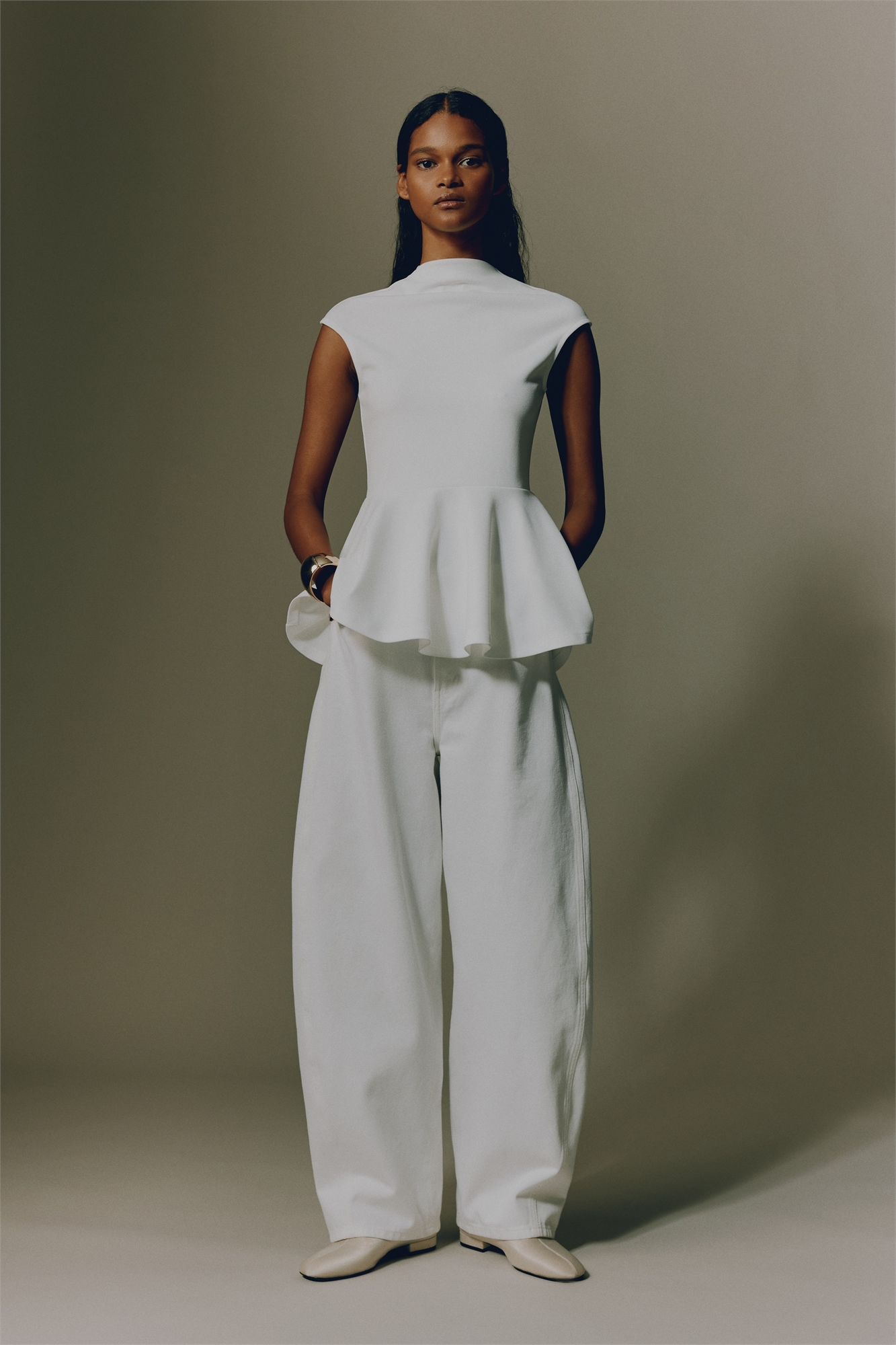 Джинсы с 5 карманами из жесткого хлопкового денима, который сначала кажется упругим, но затем смягчается и ослабевает по мере носки. Изогнутая, объемная штанина с правильной посадкой от бедра до бедра, которая сужается к подолу. Высокая талия с ширинкой на молнии и пуговице. Регулярная длина, рассчитанная на то, чтобы доходить до верхней части стопы с небольшим запасом или без него. Для создания современного образа сочетайте с блейзером больших размеров.