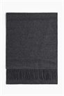 Шарф из тканого материала с бахромой по коротким сторонам.