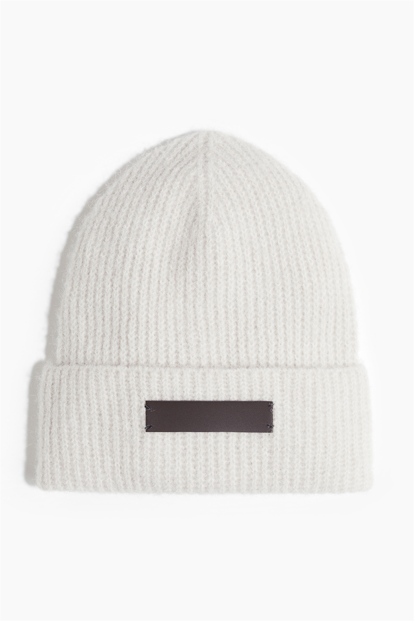 Бини из мягкого трикотажа в рубчик с добавлением шерсти с широким выворотом на подоле.