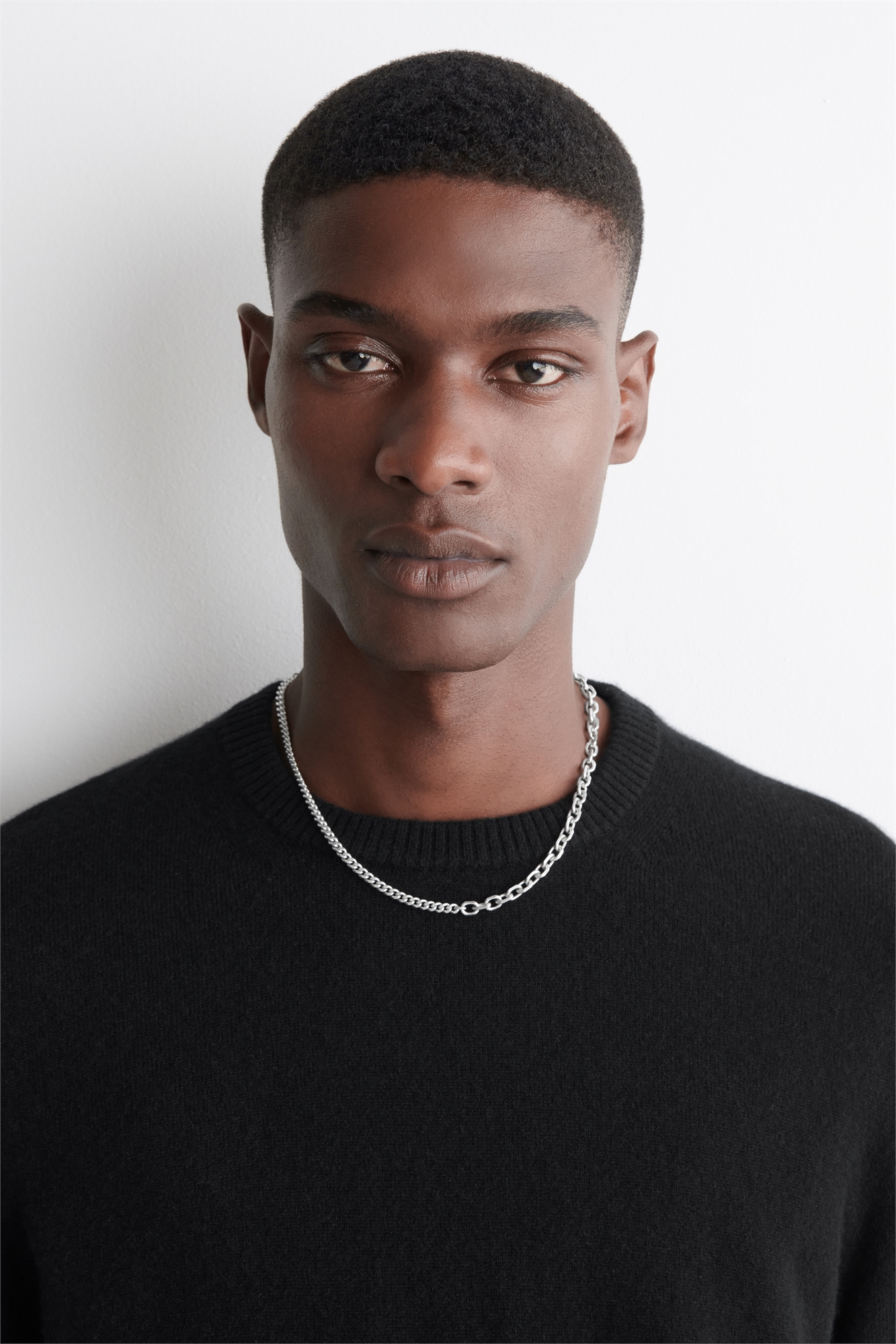 Простые, но привлекательные украшения вносят особый штрих в повседневную мужскую моду. Это современное ожерелье из переработанной посеребренной латуни состоит из овальных звеньев с гранеными краями. Застежка-лобстерЛатунь - универсальный материал, который может быть переработан несколько раз без потери своих свойств Верхний материал: 100 % переработанная постпотребительская латунь. Покрытие: 100 % серебро. Детали, кроме длины цепочки = 46 см