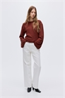 Топ из мягкого джерси из хлопка и вискозы с круглым вырезом, слегка спущенными плечами и длинными расклешенными рукавами. Подол прямого кроя с небольшим разрезом с каждой стороны.