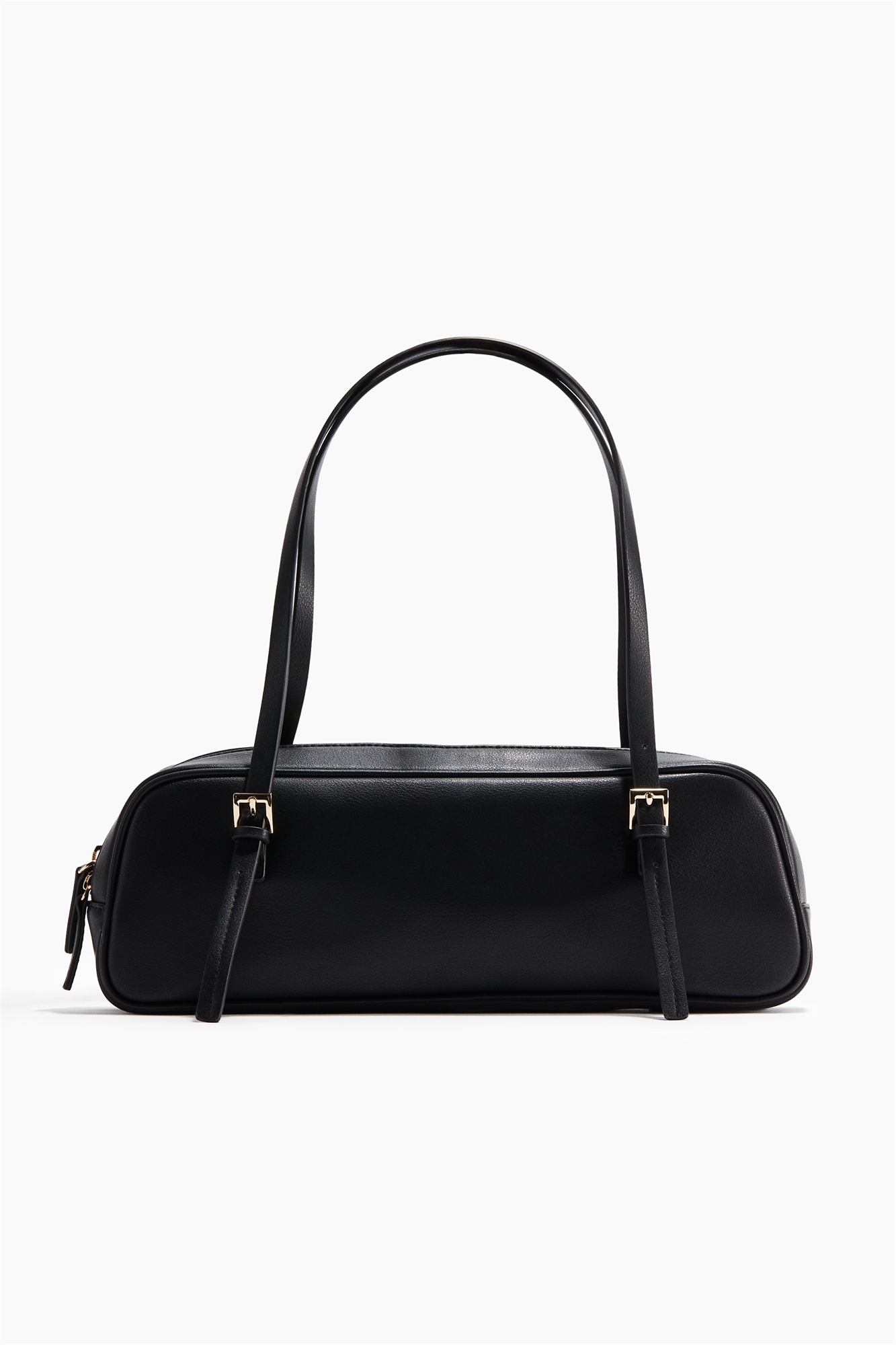 Прямоугольная сумка на плечо с регулируемыми плечевыми ремнями и двусторонней застежкой-молнией в верхней части. На подкладке.