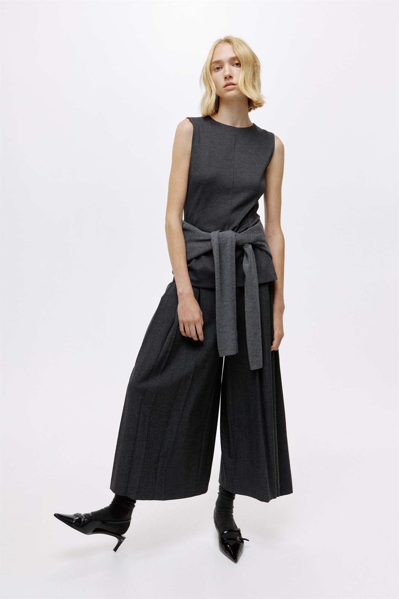 Облегающий топ без рукавов из джерси Punto di Roma с потайной застежкой-молнией сзади, фигурными швами спереди и сзади и расклешенным пеплумом.