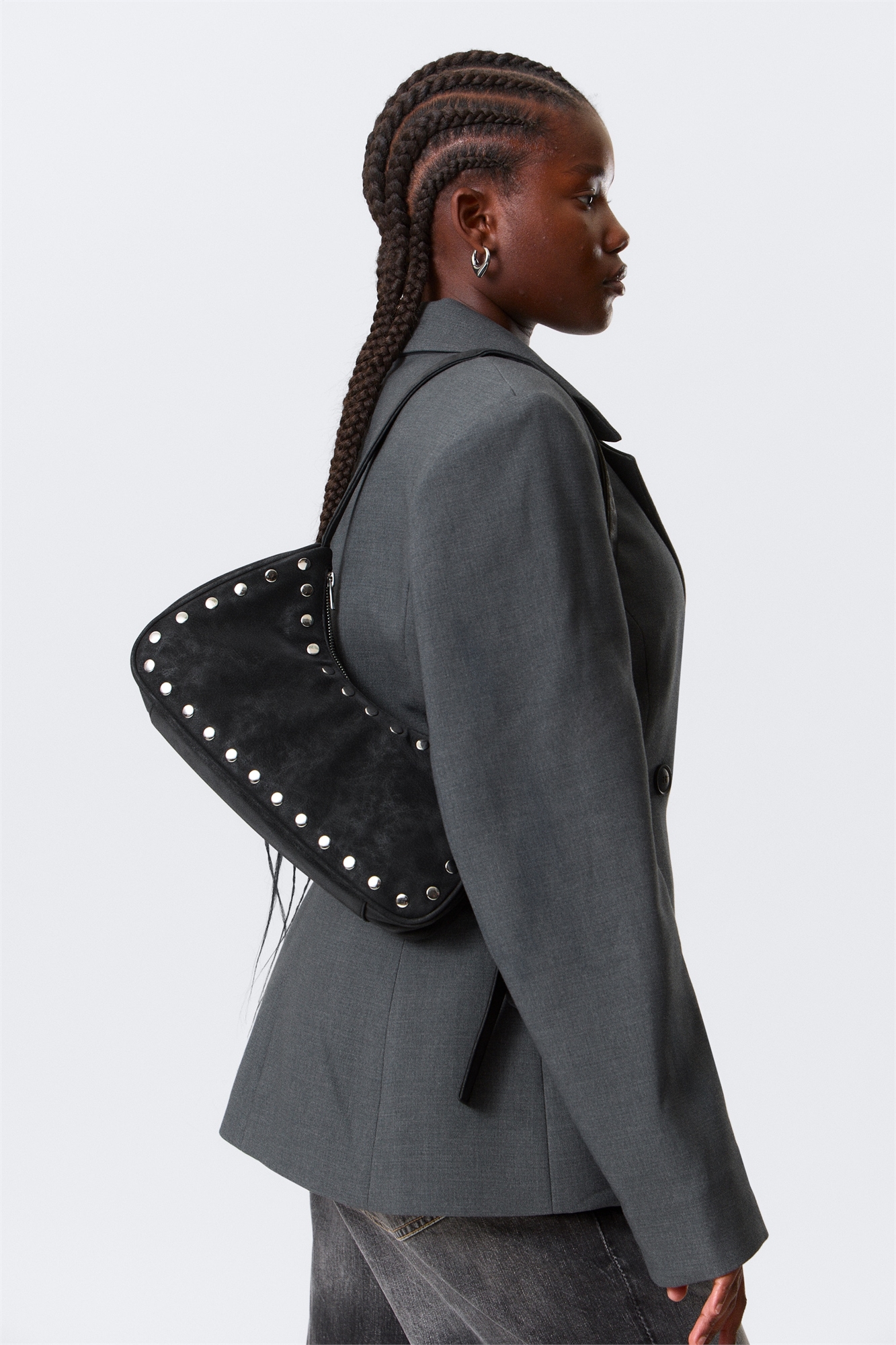 Сумочка с мягким, скульптурным силуэтом. Изготовленная из искусственной кожи, она застегивается на молнию и имеет одно вместительное отделение с внутренним накладным карманом. Сумка оснащена широким ремешком с металлической пряжкой и длинным хвостом. Размеры: ширина 32 см, высота 12 см, глубина основания 5 см.