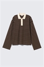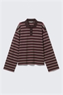 Топ-поло с длинными рукавами и непринужденным силуэтом. Изготовленный из мягкого хлопка, он имеет ребристый воротник-поло и полузастежку на пуговицах. Модель дополнена спущенными плечами и прямым подолом.