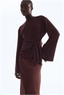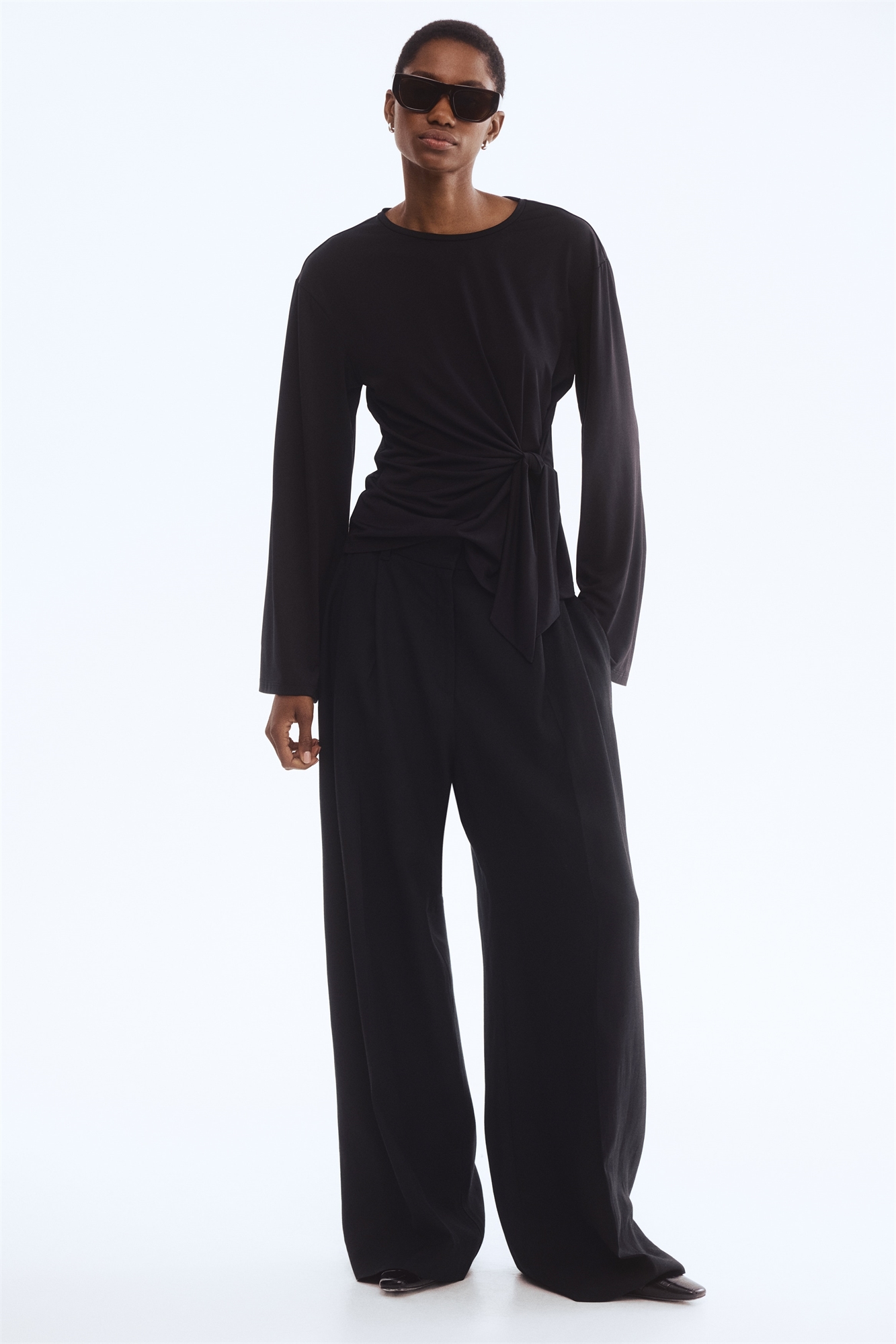 Топ с длинными рукавами из мягкого джерси с круглым вырезом, спущенными плечами и завязкой на талии с одной стороны.