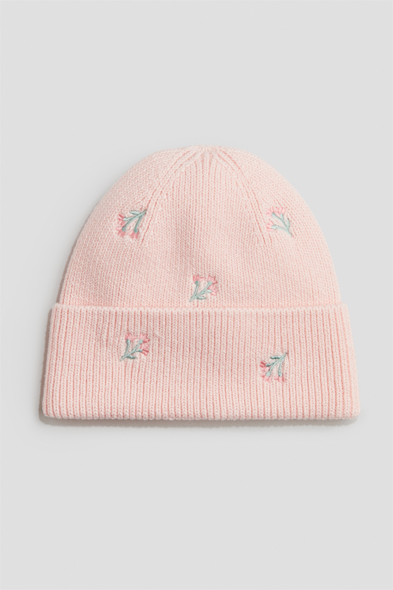 Бини из мягкого трикотажа в рубчик с вышитыми деталями и подворотом на подоле.