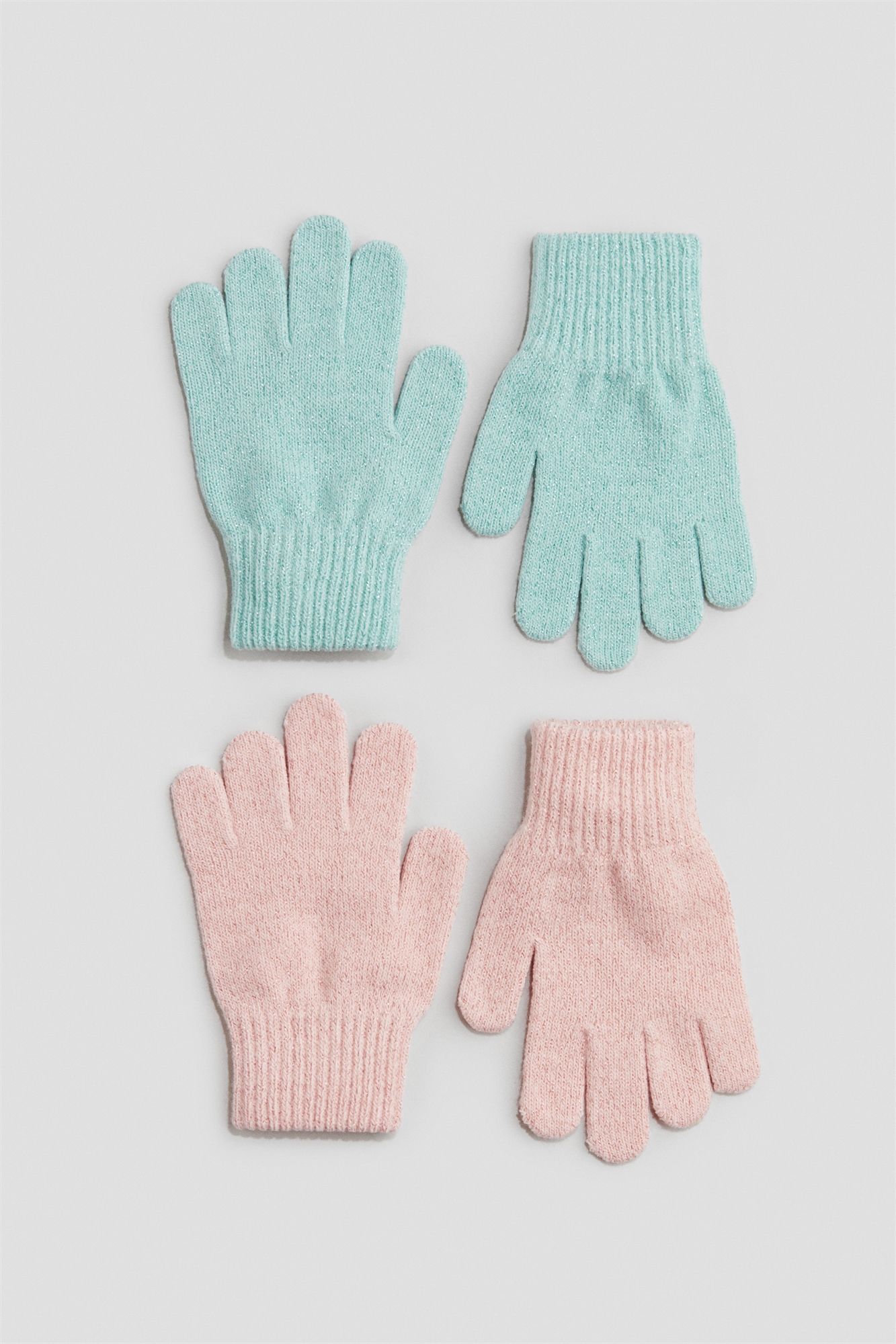 Перчатки из мягкого тонкого трикотажа с блестящими нитями и тесемками на манжетах.