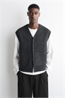 Этот коричневый жилет на пуговицах спереди изготовлен из мягкой вареной шерсти и имеет видимые швы, ребристые боковые части и незаметные карманы. Носите его поверх рубашек и футболок. Свободный кройПуговицыВ изделии использованы волокна шерсти Responsible Wool Standard TE-00047206 (RWS) с ферм, сертифицированных в соответствии с требованиями к благополучию животных и сельскому хозяйству Внешняя ткань: 97 % шерсти RWS, 2 % переработанного полиамида (переработанного нейлона), 1 % эластана. Детали исключены/Сухая чистка Длина по спинке в размере M = 63 см/Модель носит размер M