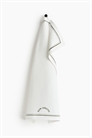 Кухонное полотенце из смешанной ткани хлопка и льна с вышитыми деталями и петлей для подвешивания на одной из коротких сторон.