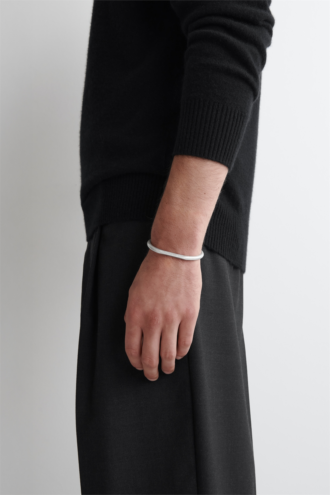 Простые, но привлекательные украшения добавляют особый штрих к повседневной моде для мужчин. Этот современный браслет из переработанной посеребренной латуни имеет овальную форму и граненые края. Латунь - универсальный материал, который может быть переработан несколько раз без потери своих свойств Верхний материал: 100 % переработанная постпотребительская латунь. Покрытие: 100 % серебро. Детали, кроме внутренней ширины в размере XS/S = 6 см, в размере M/L = 6,5 см