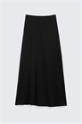Легкая юбка из хлопкового трикотажа с мягкой текстурой. Она сидит на средней талии с внутренней резинкой для комфорта и имеет мягкий расклешенный силуэт, который опускается до длины макси. Модель имеет чистую отделку, задний шов с разрезом и необработанный двойной подол.