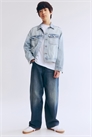 Джинсы с 5 карманами из моющегося денима со свободной посадкой по бедрам и бедрам и опущенной промежностью. Регулируемая резинка на талии, ширинка на молнии с пуговицей и бочкообразные ноги с коническими каблуками и подвернутыми боковыми швами.