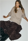 Юбка длиной до колена из плиссированного шифона, украшенного блестящими пайетками. Высокая талия с эластичным поясом и оверлочный подол. Без подкладки.