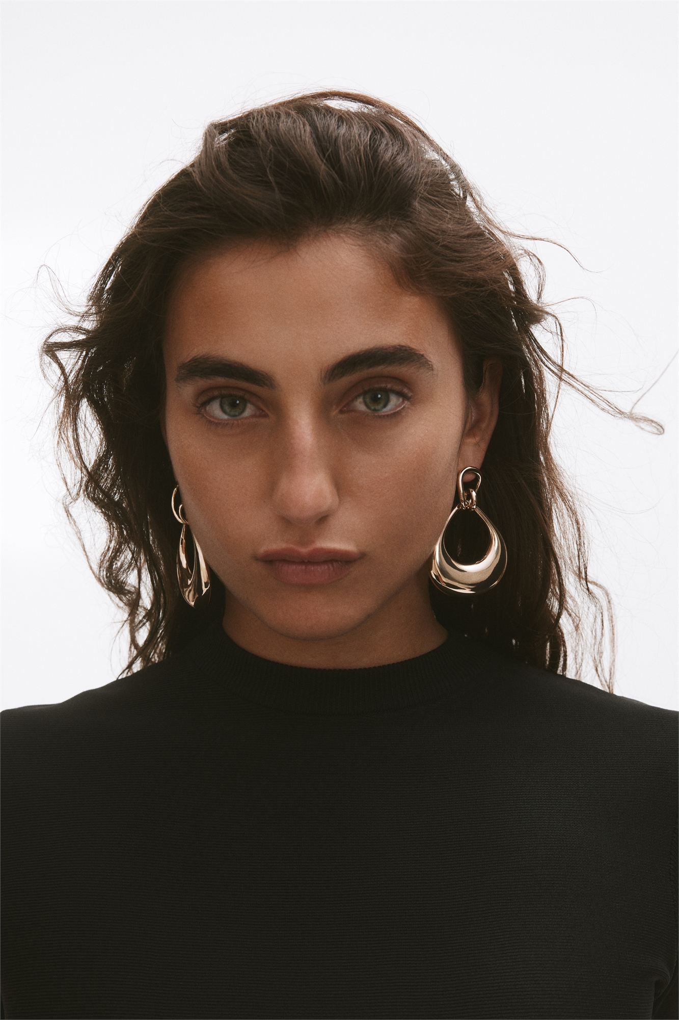 Серьги-пусеты из блестящего металла.