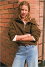 Джемпер из мягкого трикотажа с высоким воротником-стойкой и застежкой-молнией в верхней части. Спущенные плечи, длинные рукава, манжеты и подол в рубчик.