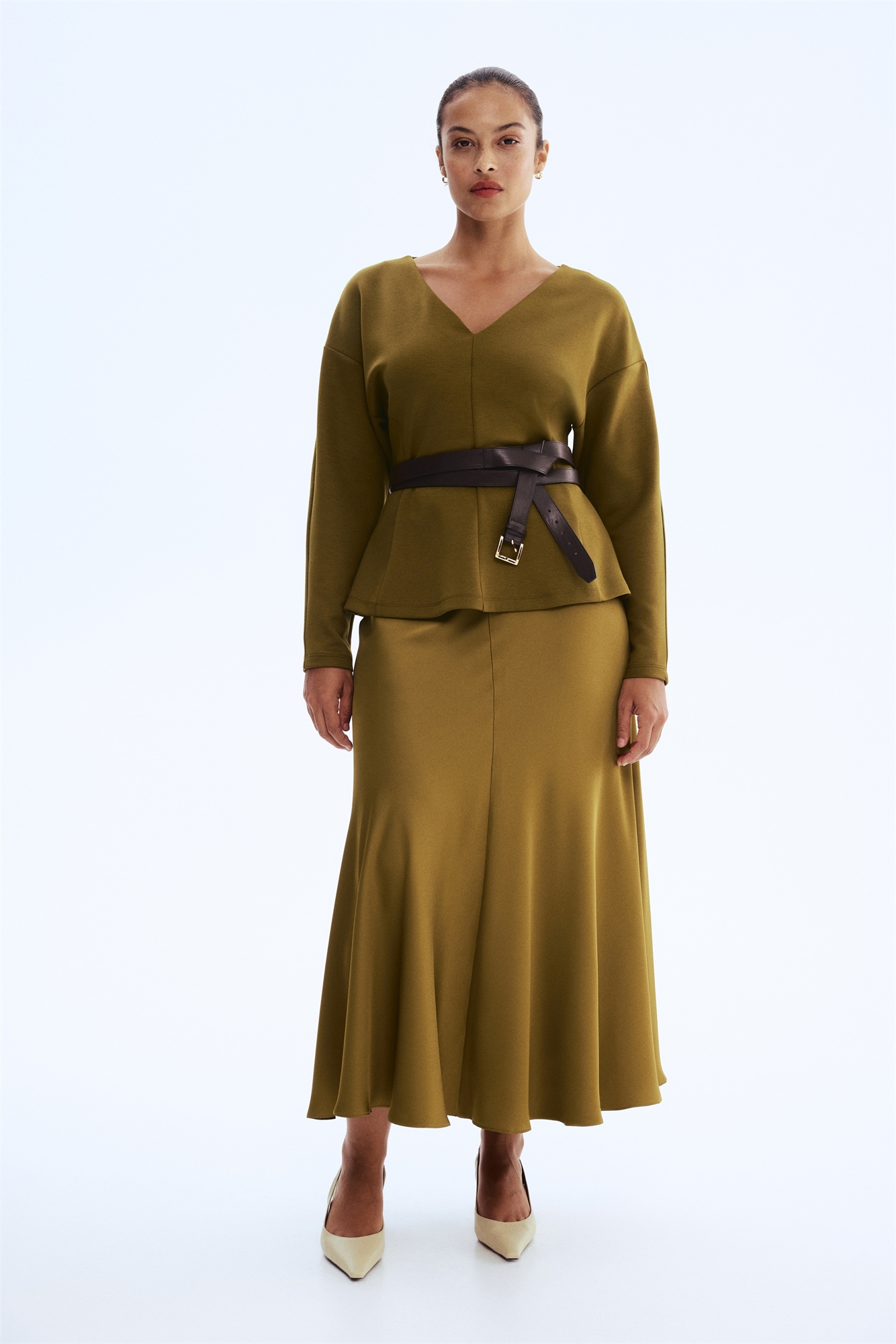 Пояс на талии с двумя ремешками и дополнительными ремешками с металлической пряжкой спереди, чтобы создать вид ремня, завязанного в узел. Регулируемая застежка сзади.