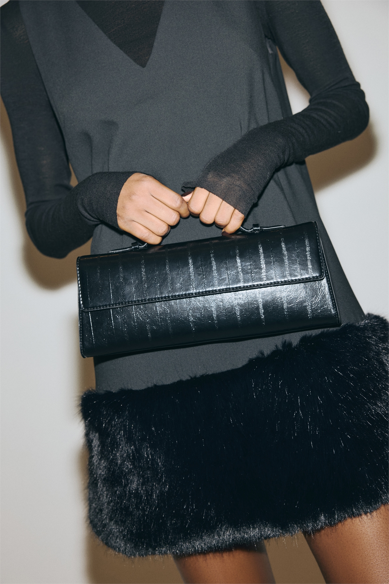 Короткое платье без рукавов из тканого материала с глубоким V-образным вырезом и широкой панелью из мягкой пушистой ткани по подолу. На подкладке.