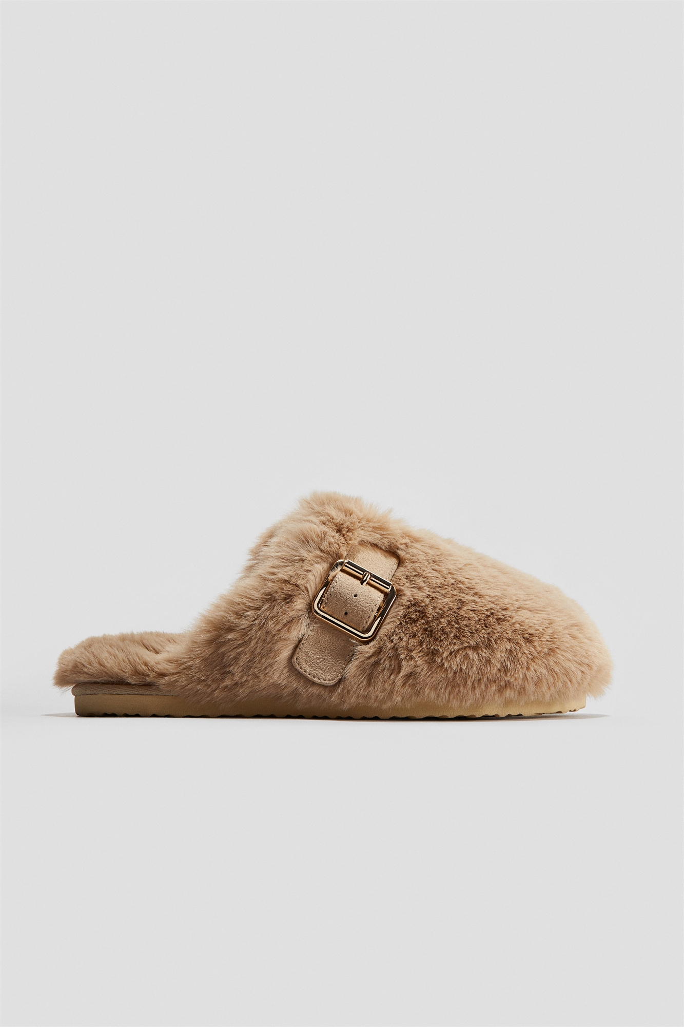 Тапочки из уютной пушистой ткани с ремешком на ноге с металлической пряжкой. Подкладка и стелька из пушистой ткани, рифленая подошва.