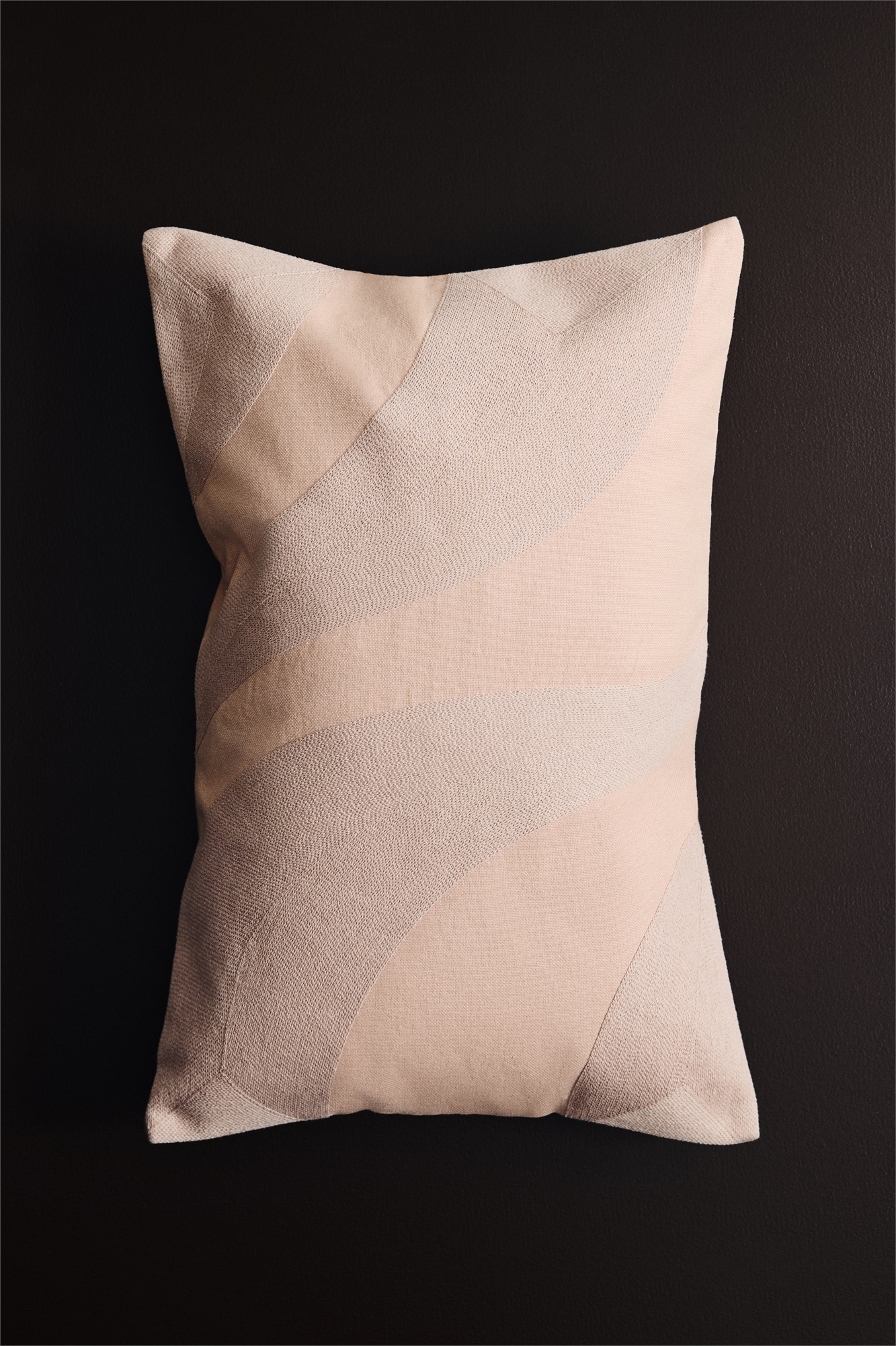 Чехол для подушки из хлопкового холста с вышитым узором спереди и однотонным сзади. Потайная застежка-молния с одной стороны.