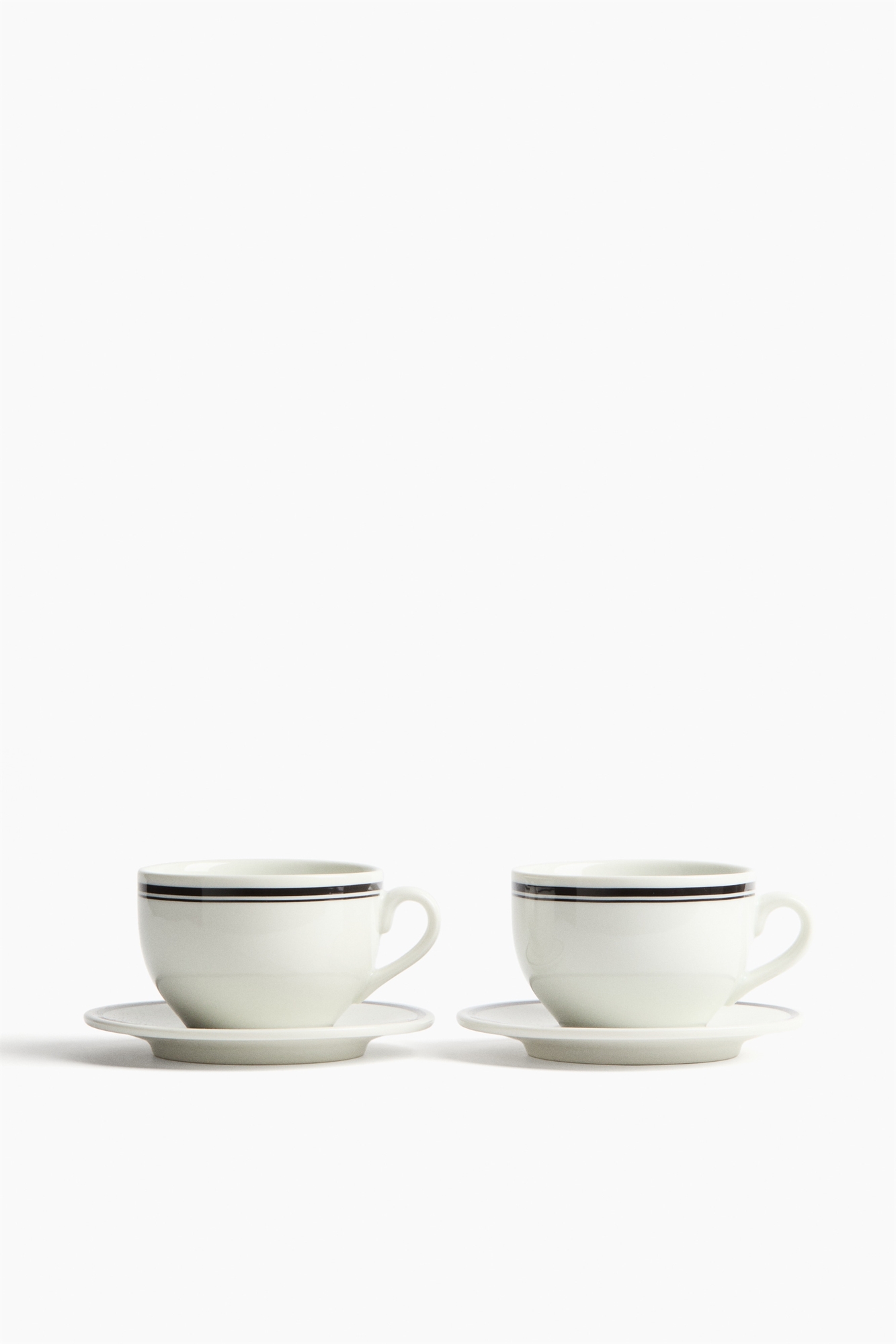 Чашки и блюдца из фарфора с классическим расписным ободком, вдохновленные уютными бистро на улицах Франции.