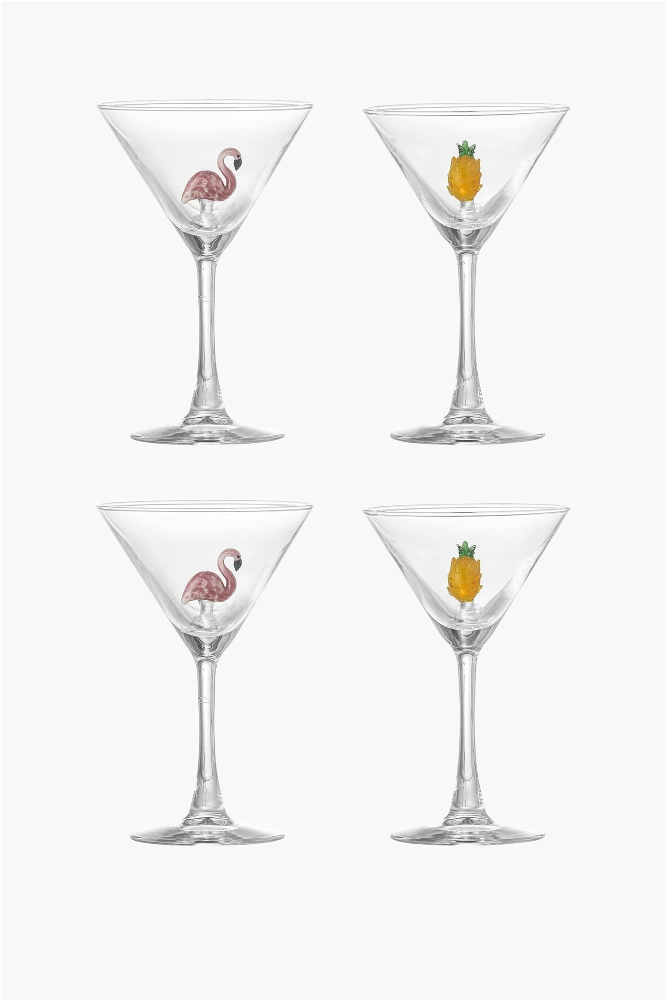 Коктейльный бокал Misa от Bloomingville - это набор из четырех бокалов, которые придадут игривый вид сервировке вашего стола. В набор входят два бокала с очаровательным рисунком фламинго и два - со сверкающим ананасом. Каждый бокал уникален благодаря выдуванию ртом и ручной работе. Ø9xH16 см, набор из 4 штук.