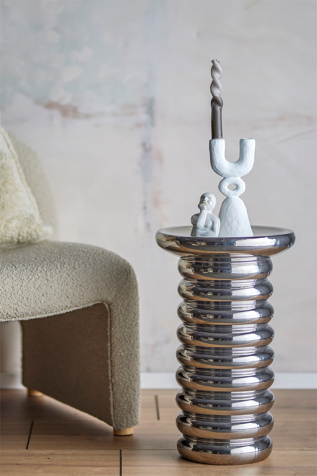 Приставной столик Spike от Bloomingville изготовлен из керамогранита и имеет блестящую хромированную отделку, что придает ему современный и элегантный вид. Ребристая цилиндрическая форма придает столику характер и делает его подходящим для использования в качестве приставного столика рядом с диваном, в прихожей или для размещения декоративных предметов. Простой, но яркий дизайн столика хорошо вписывается как в современные, так и в классические интерьеры. D30xH50 см.