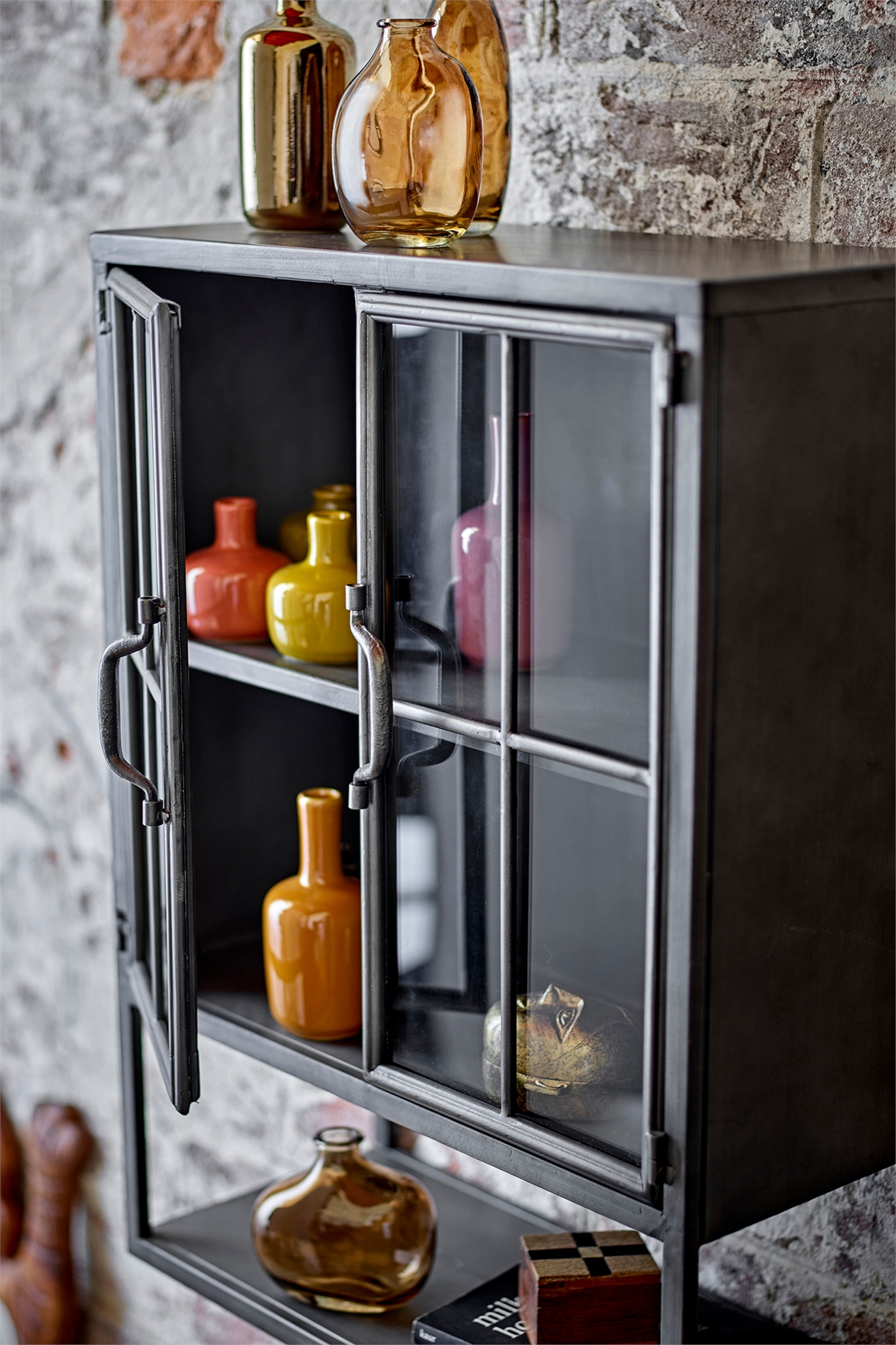 Шкаф Sindre от Bloomingville изготовлен из металла со стеклянными окнами и видимыми сварными швами, что придает ему необработанный и индустриальный вид. Шкаф может висеть на стене или стоять на полу, поэтому он идеально впишется в ваш дом. Он идеально подходит для хранения или демонстрации красивых украшений, статуэток и других предметов. L46xH61xW21,5 см.