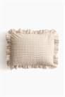 Наволочка из набивного хлопка с оборкой по краям и отверстием для конверта сзади.