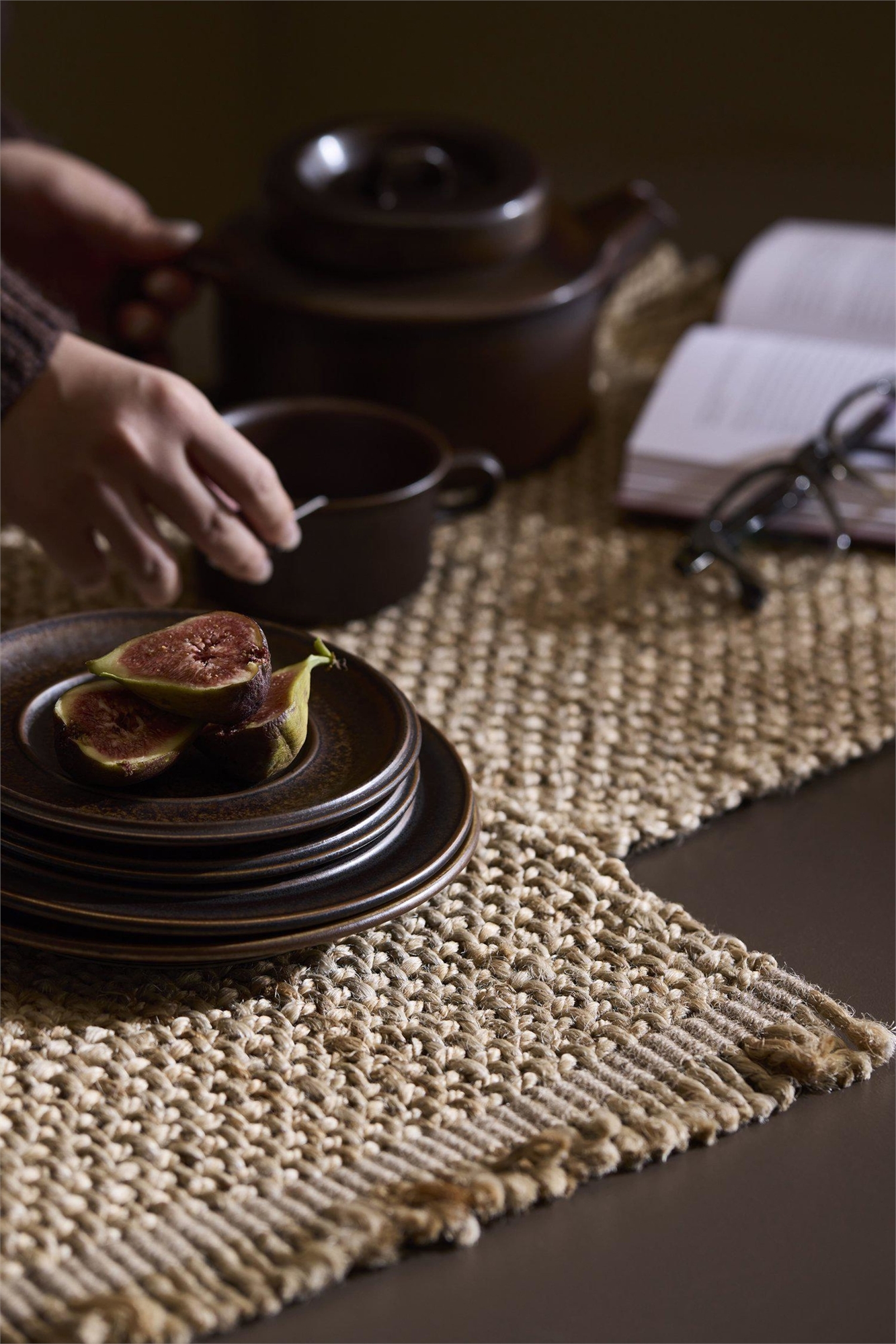 Плетеная джутовая дорожка для стола с бахромой. Размер 40x140 см с учетом бахромы.